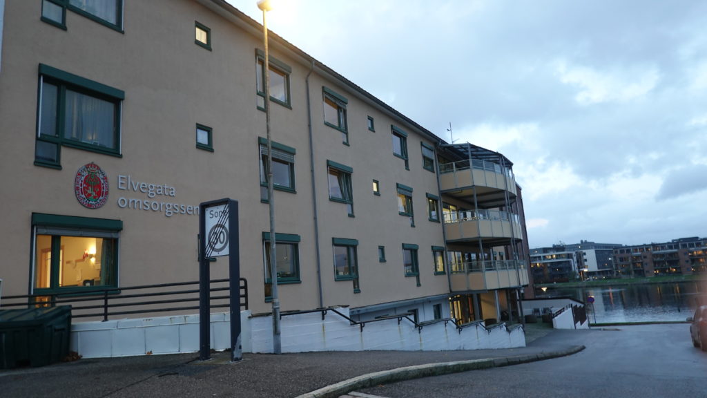 Elvegata omsorgssenter ligger flott til ved Otras elvebredde, med lett tilgang til park og grillplass. Byens sentrum med handlegater og kafeer er også like rundt hjørnet. Dette er et av byens eldste sykehjem. Sykehjemmet ble renovert i 2000 og fremstår i dag som et moderne omsorgssenter.