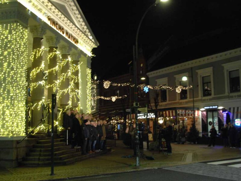 Litt førjuls byvandring i Kristiansand sentrum med utdeling av musikalsk glede.